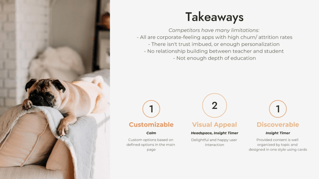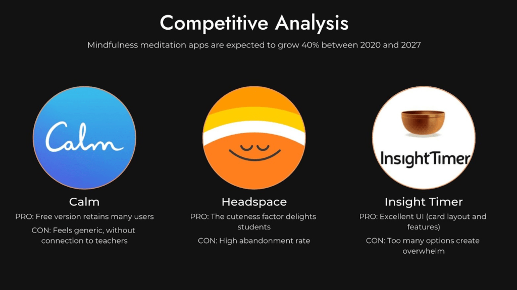 We examined the industry leaders in online meditation, and looked at the overall business space for a broader perspective.