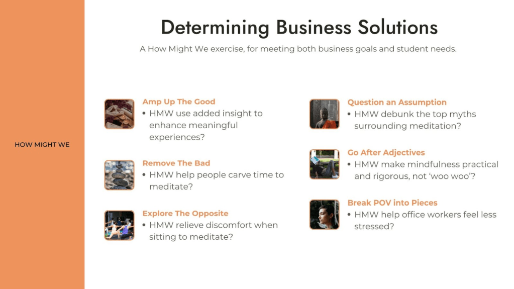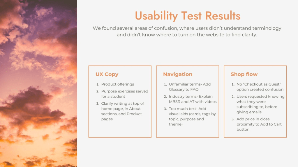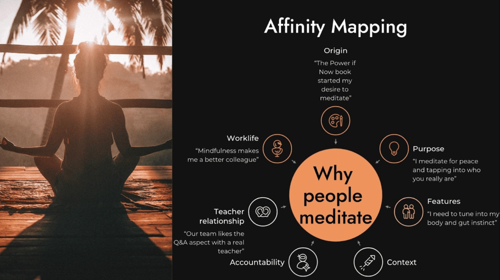 Our client teaches Mindfulness Based Stress Reduction, which studies have found is remarkably effective. (Our MVP UX Writing capitalized on the breadth of meditation research: “Meditation backed by science, rather than fads.”)